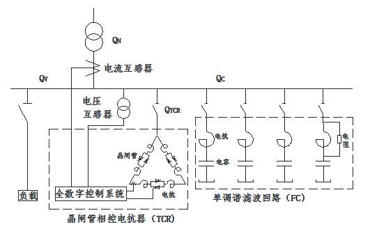 TCR型SVC的工作原理:當(dāng)負(fù)荷變化時(shí),電容與負(fù)載共同產(chǎn)生一個(gè)容性無功沖擊,這時(shí)用一個(gè)可調(diào)電抗(電感)來產(chǎn)生相對(duì)應(yīng)的感性無功,抵消容性無功沖擊,這樣在負(fù)荷波動(dòng)過程中,就可以保證系統(tǒng)無功接近于零。