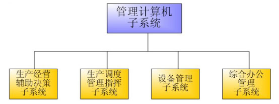 按照管理系統(tǒng)的功能劃分為:生產(chǎn)經(jīng)營輔助決策子系統(tǒng)、生產(chǎn)調(diào)度管理指揮子系統(tǒng)、設(shè)備管理子系統(tǒng)、綜合辦公管理子系統(tǒng)。