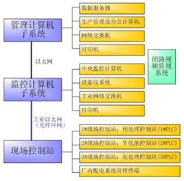 對于污水廠計算機監(jiān)控系統(tǒng),適用于采用一個二級管理的計算機監(jiān)控系統(tǒng),其上級系統(tǒng)位于中控室,用于對全廠的所有站點設(shè)備進行監(jiān)控;下級系統(tǒng)位于各個PLC站點,通過PLC實現(xiàn);上下級通過數(shù)據(jù)通信網(wǎng)絡(luò)進行數(shù)據(jù)交換;上下級均可通過網(wǎng)絡(luò)對系統(tǒng)內(nèi)的設(shè)備進行監(jiān)測和控制;下級系統(tǒng)只能對本地站點設(shè)備進行監(jiān)控,而上級系統(tǒng)可以對所有站點設(shè)備進行監(jiān)制。